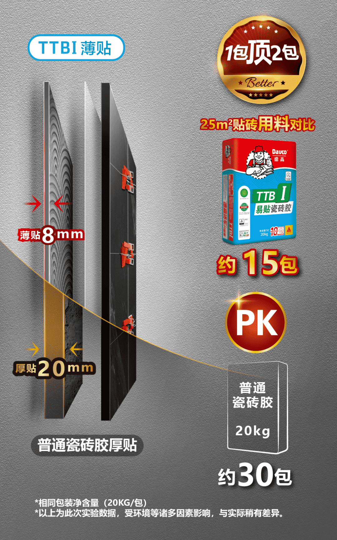 规范施工下,德高瓷砖胶薄贴8毫米,可达到强效粘结效果。厚贴会加剧其收缩性,且无法保证满浆率。