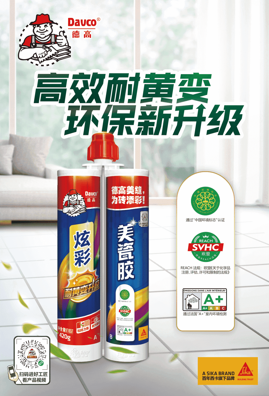 德高炫彩美瓷胶,环保再升级,不仅通过法国“A+”室内环境检测,还通过“中国环境标志”认证且符合欧盟REACH法规,实力杠杠滴!