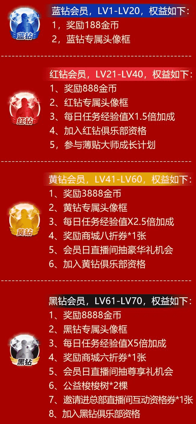 1、等级名称,新升级 原有“新人出师”、“白银工匠”、“黄金巧匠”、“大师德匠”等级名称依次升级为→蓝钻、红钻、黄钻、黑钻!