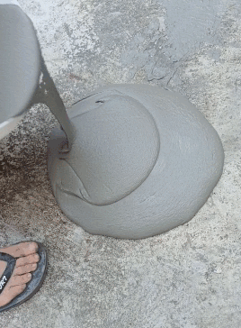 搅拌好后,倒在地上进行批刮