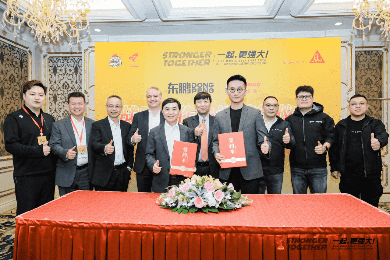 图注:总决赛期间,西卡德高与 广东东鹏举行战略合作协议签约仪式,双方强强联手,共绘未来