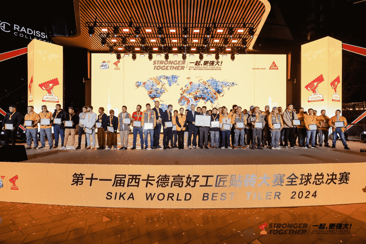 图注:本届大赛由西卡德高联合中国陶瓷工业协会瓷砖粘贴技术专业委员会、中国建筑材料联合会预拌砂浆分会、中国建筑装饰协会住宅装饰装修和部品产业分会共同举办,赛事现场嘉宾云集