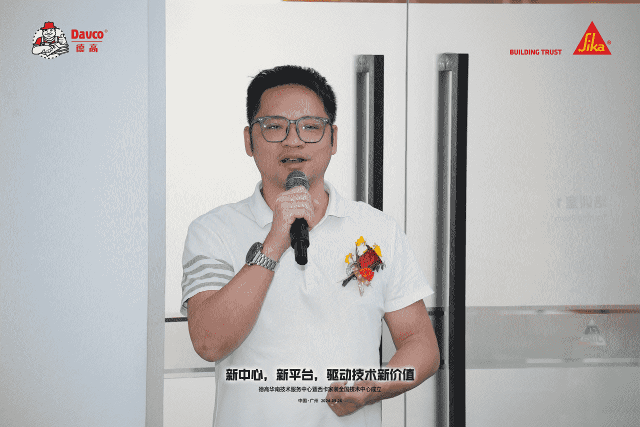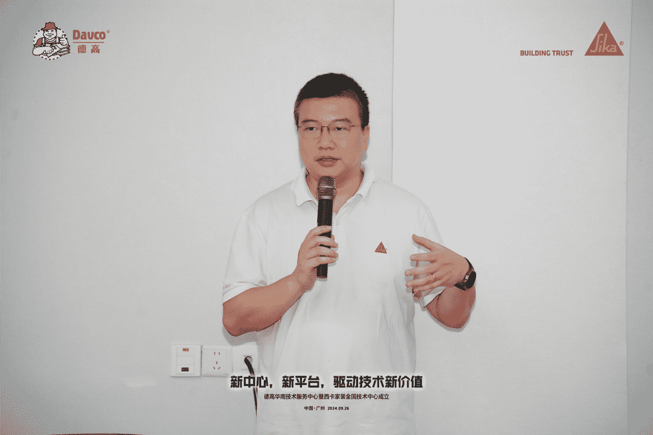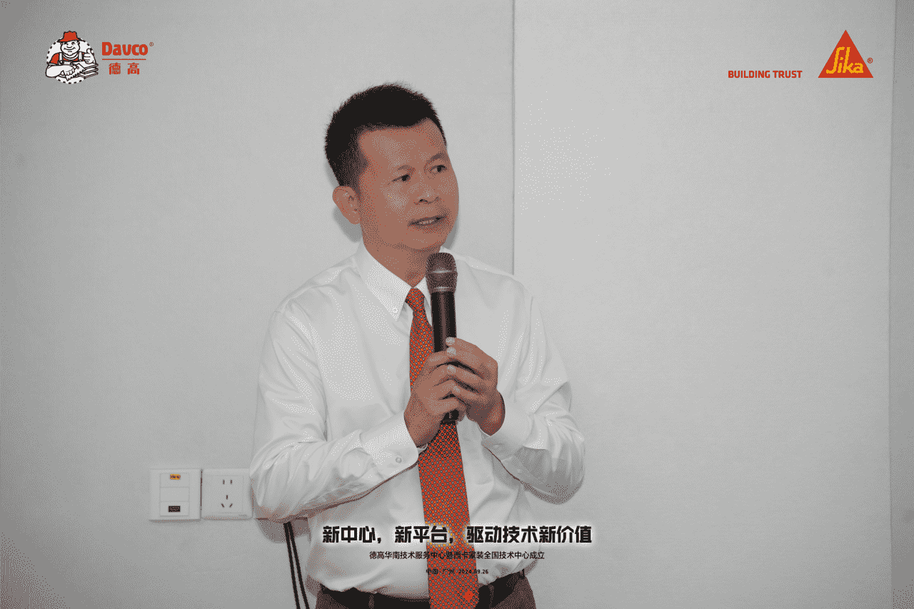 西卡德高应用技术培训中心总监王文江先生对德高华南技术服务中心暨西卡家装全国技术中心的成立表示热烈祝贺。他认为,专业的技术服务是客户认可我们品牌的重要因素,非常高兴看到华南技服团队的成长与壮大。