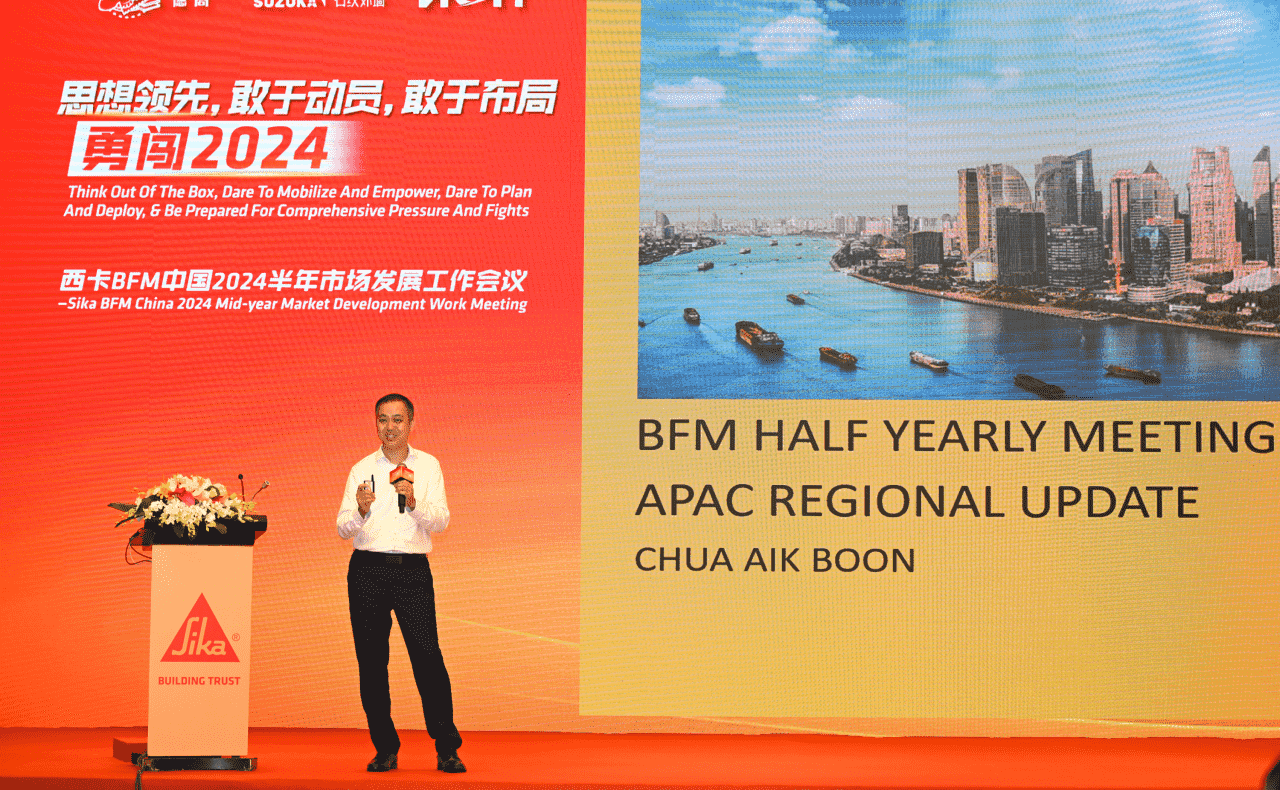 西卡建筑装修材料·中国(以下简称:西卡BFM·中国)于7月21日至23日,在上海成功举办了2024半年市场发展工作会议。西卡亚太区财务总监Aik Boon Chua先生、公司各级管理层干部出席本次会议。